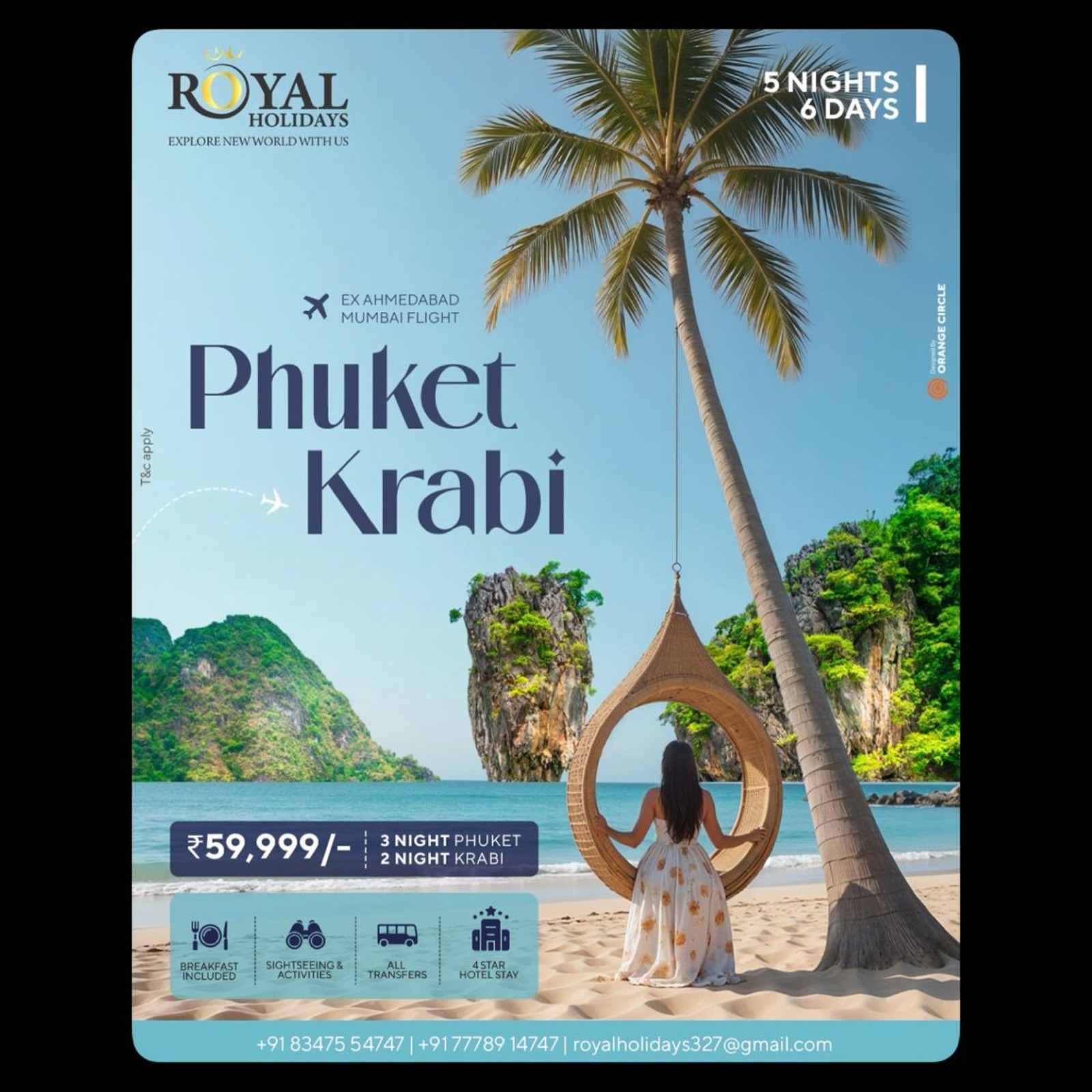 π΄ Phuket & Krabi Tour Package from Ahmedabad β¨ 5 Nights / 6 Days Phuket & Krabi Holiday β Starting @ βΉ59, 999/- Looking for the perfect beach escape? Book your Phuket & Krabi Tour Package from Ahmedabad with Royal Holidays and explore Thailandβs most stunning destinations. π Itinerary Highlights: β 3 Nights in Phuket + 2 Nights in Krabi β Coral Island Tour & Phi Phi Island Trip β Krabi 4 Island Hopping Tour β Breakfast Included + 4β Hotel Stay β Sightseeing, Activities & All Transfers βοΈ Ex-Ahmedabad/Mumbai Flights Available π° Special Discount on Advance Booking! π Call: +91 83475 54747 | +91 77789 14747 π§ royalholidays327@gmail.com